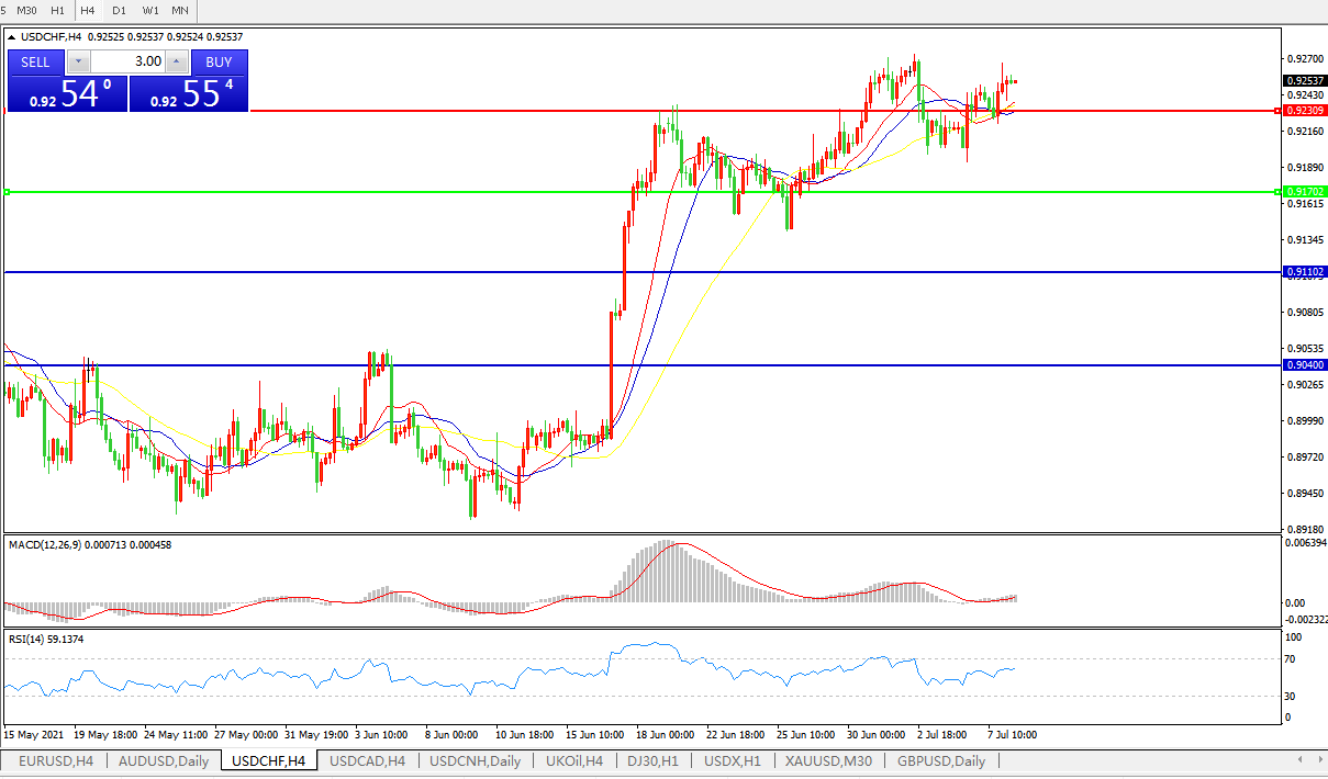美元兑瑞郎USDCHF 4小时图: