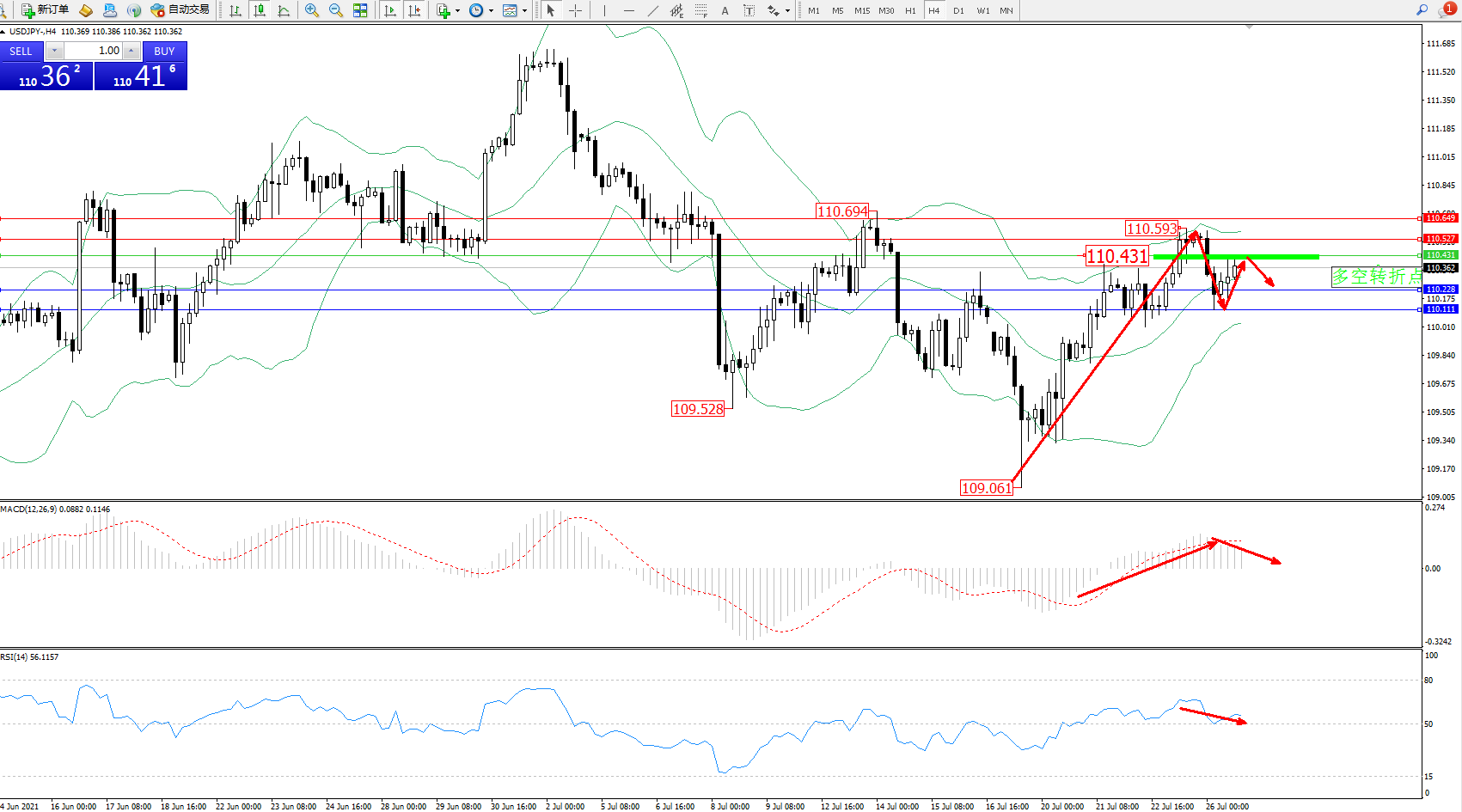 交易策略:110.431下方看跌,目标110.228、110.111