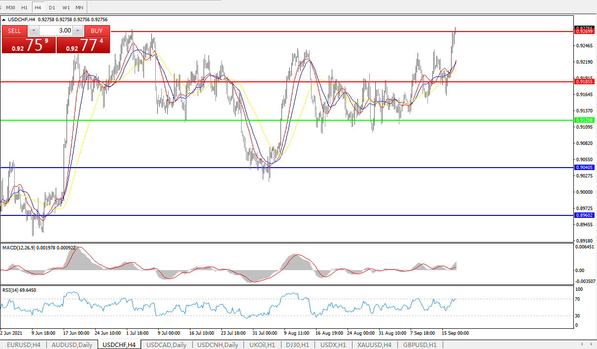 美元兑瑞郎USDCHF 4小时图: