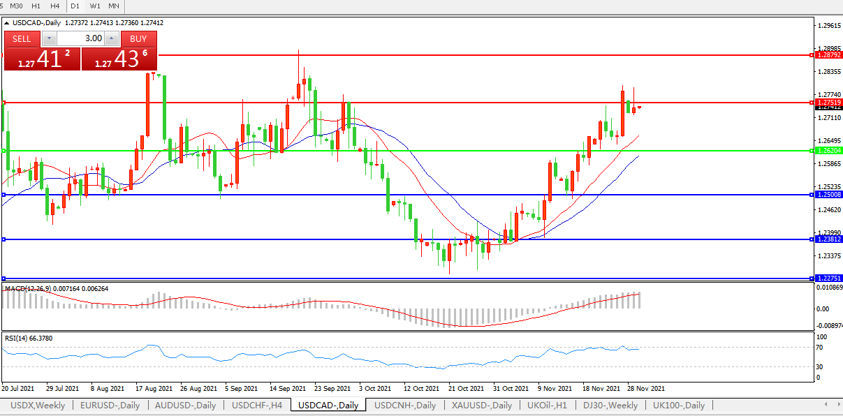 美元兑加元USDCAD 日线图: