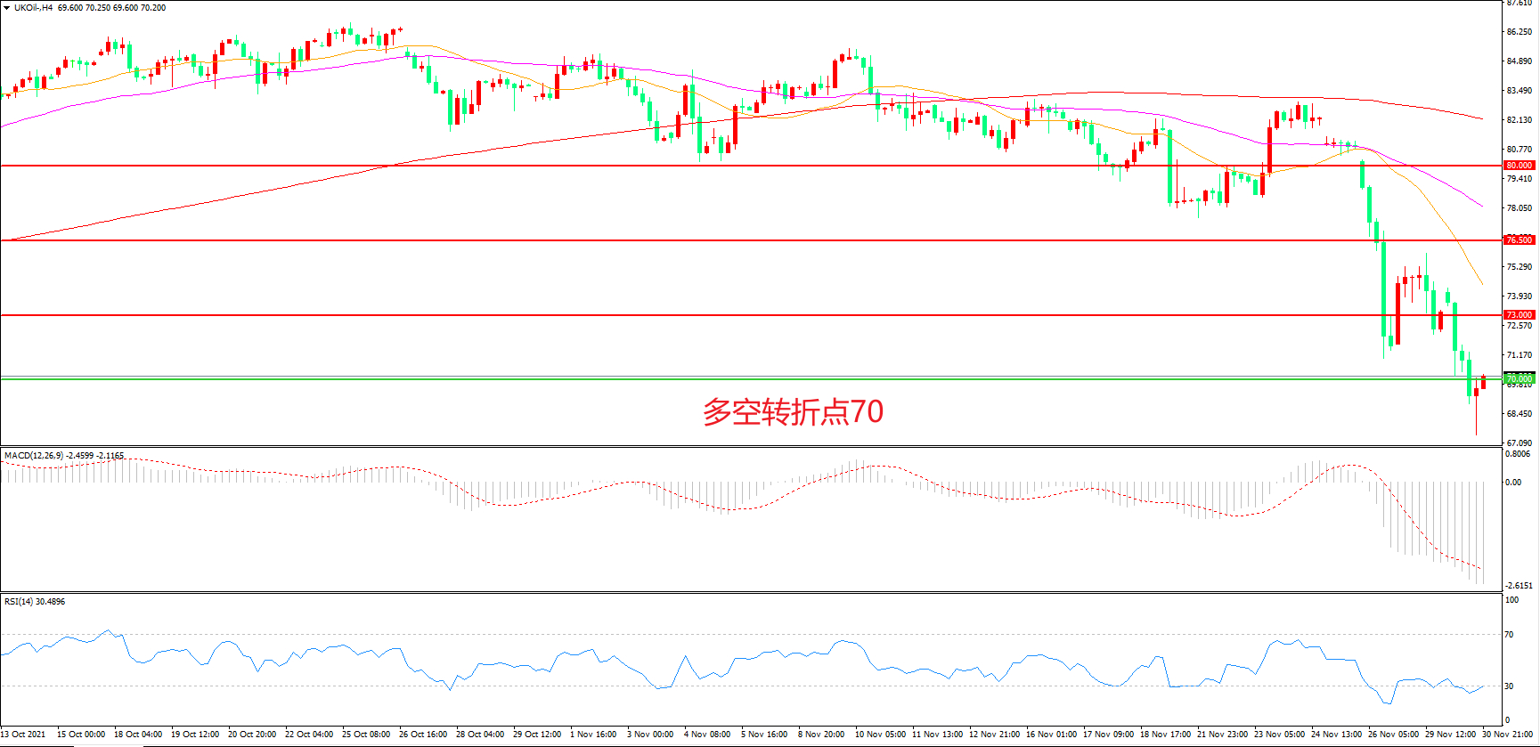 交易策略:在70.00之下看跌,目标67.50                65.00
