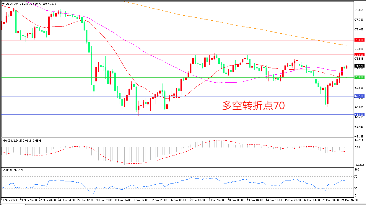 交易策略:在70.00之上看涨,目标73.00 75.00