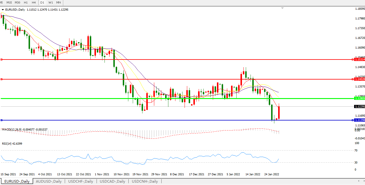 交易策略:1.1280下方看跌,目标1.1140、1.0600
