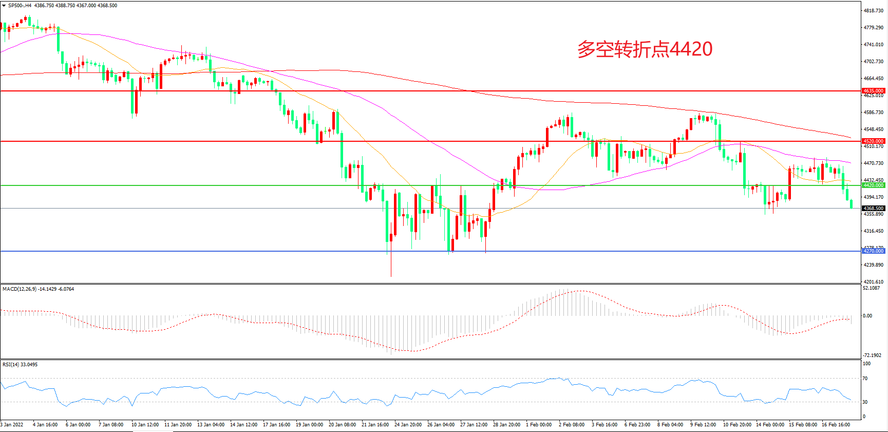 多空转折点:4420.00