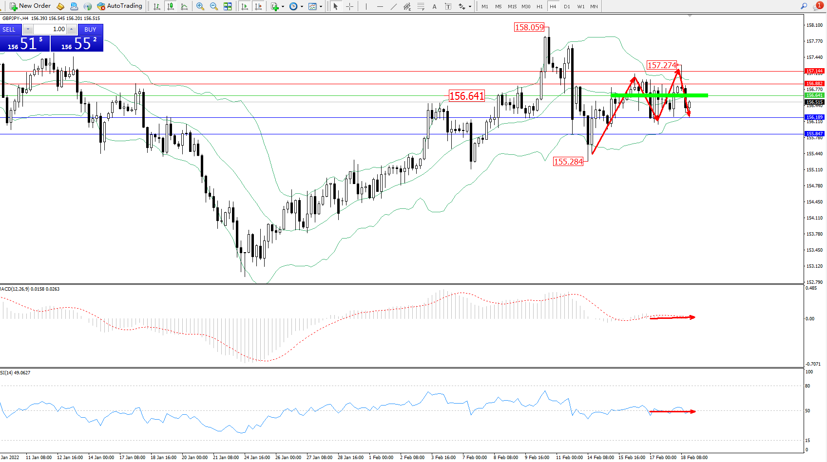 交易策略:156.641下方看跌,目标156.189、155.847