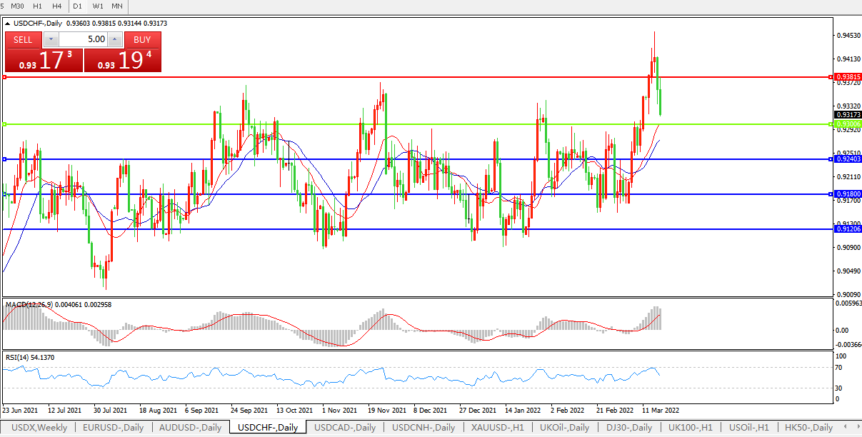 美联储料激进对待通胀,美元兑瑞郎快速回落