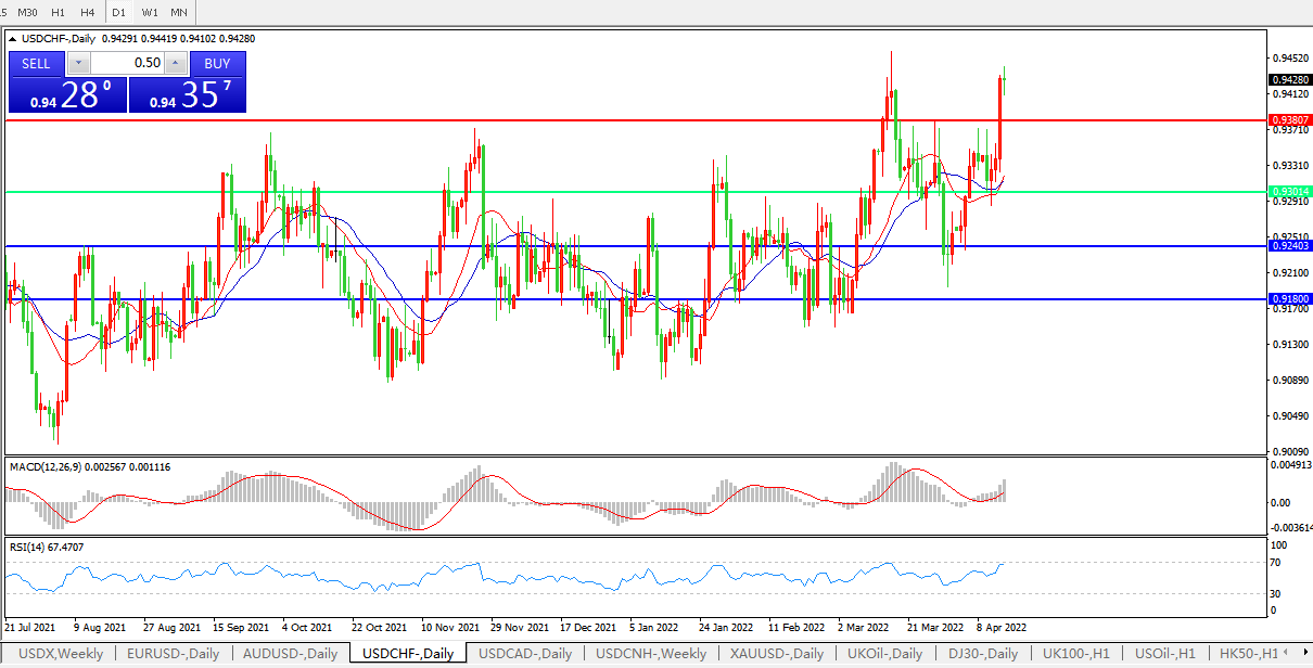 数据支撑美联储加息,美元兑瑞郎加速上行
