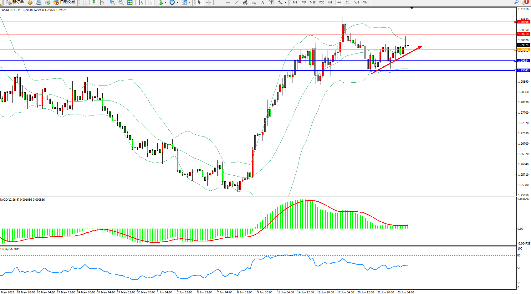 美元兑加元维持1.29874附近震荡,油价上涨、美国经济的迅猛发展以及加拿大央行额积极行动(通过积极的利率政策引导债券收益率走高)共同推动了加元的上涨。