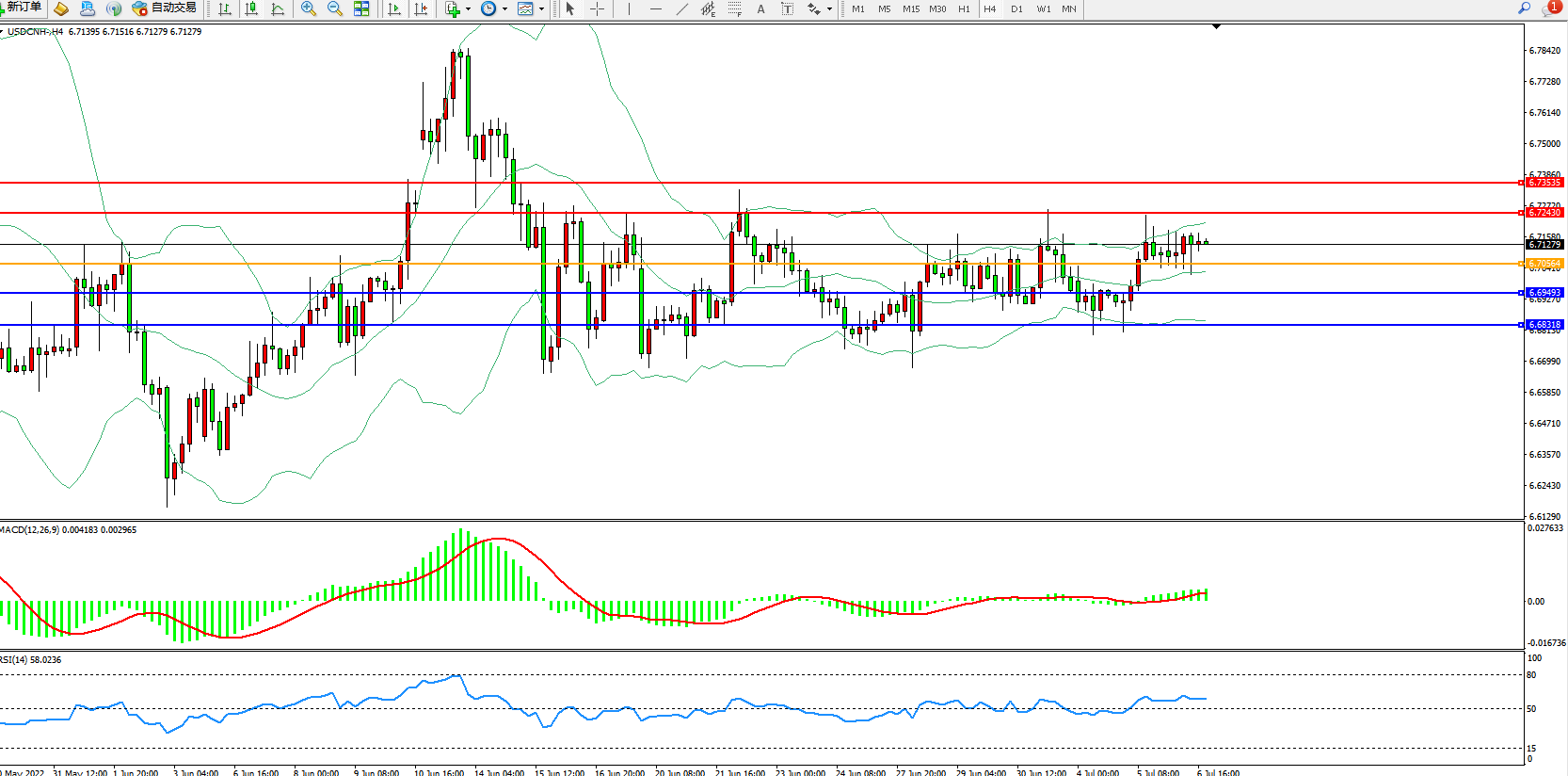 交易策略:6.70564上方看涨,目标6.72430、6.73535