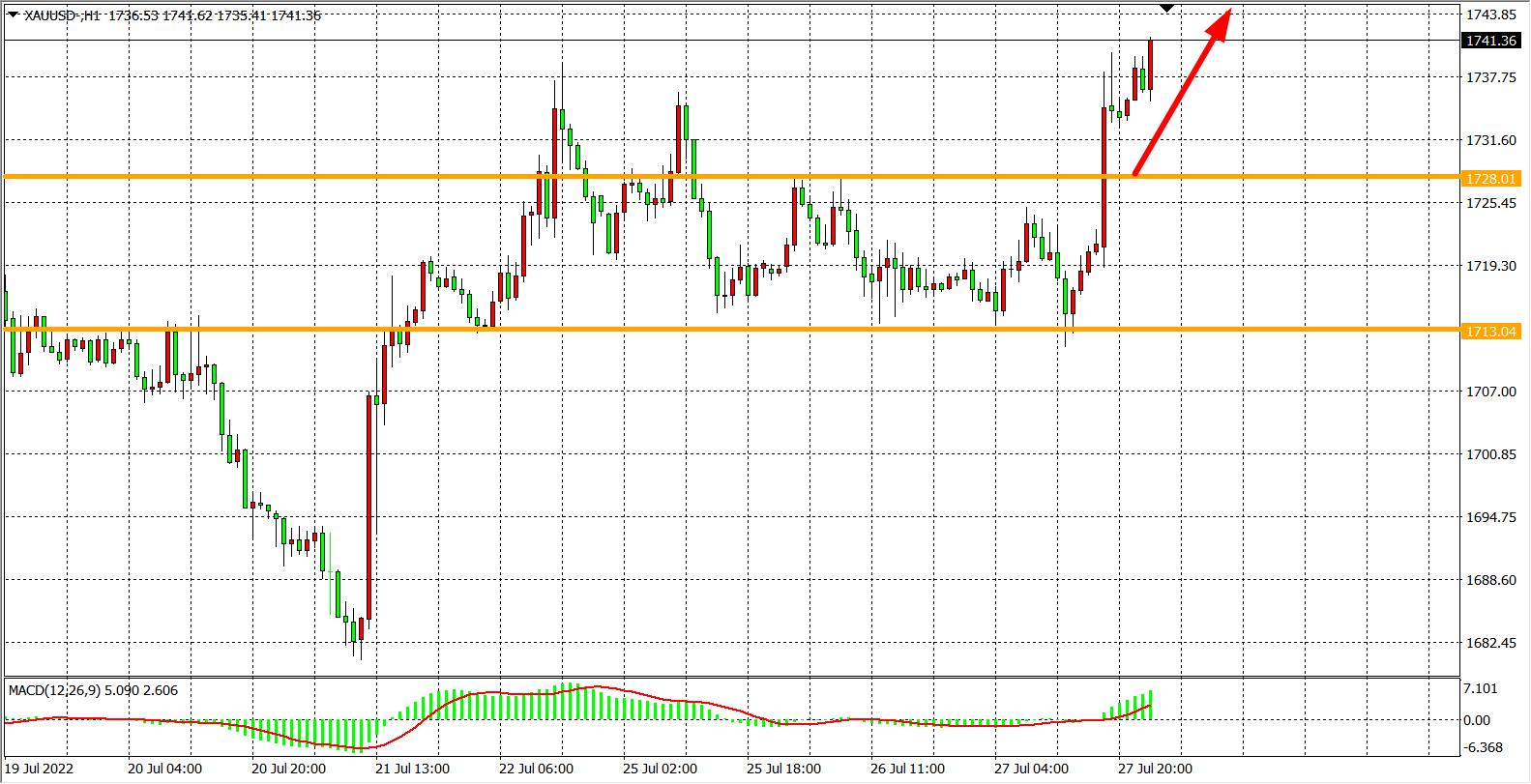 备选策略:在1728.00之下看跌,目标1713.00 1700.00