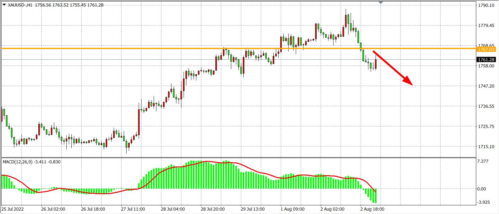备选策略:在1767.00之下看跌,目标1750.00           1740.00