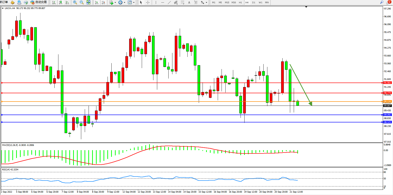 交易策略:90.116下方看跌,目标89.092、88.525