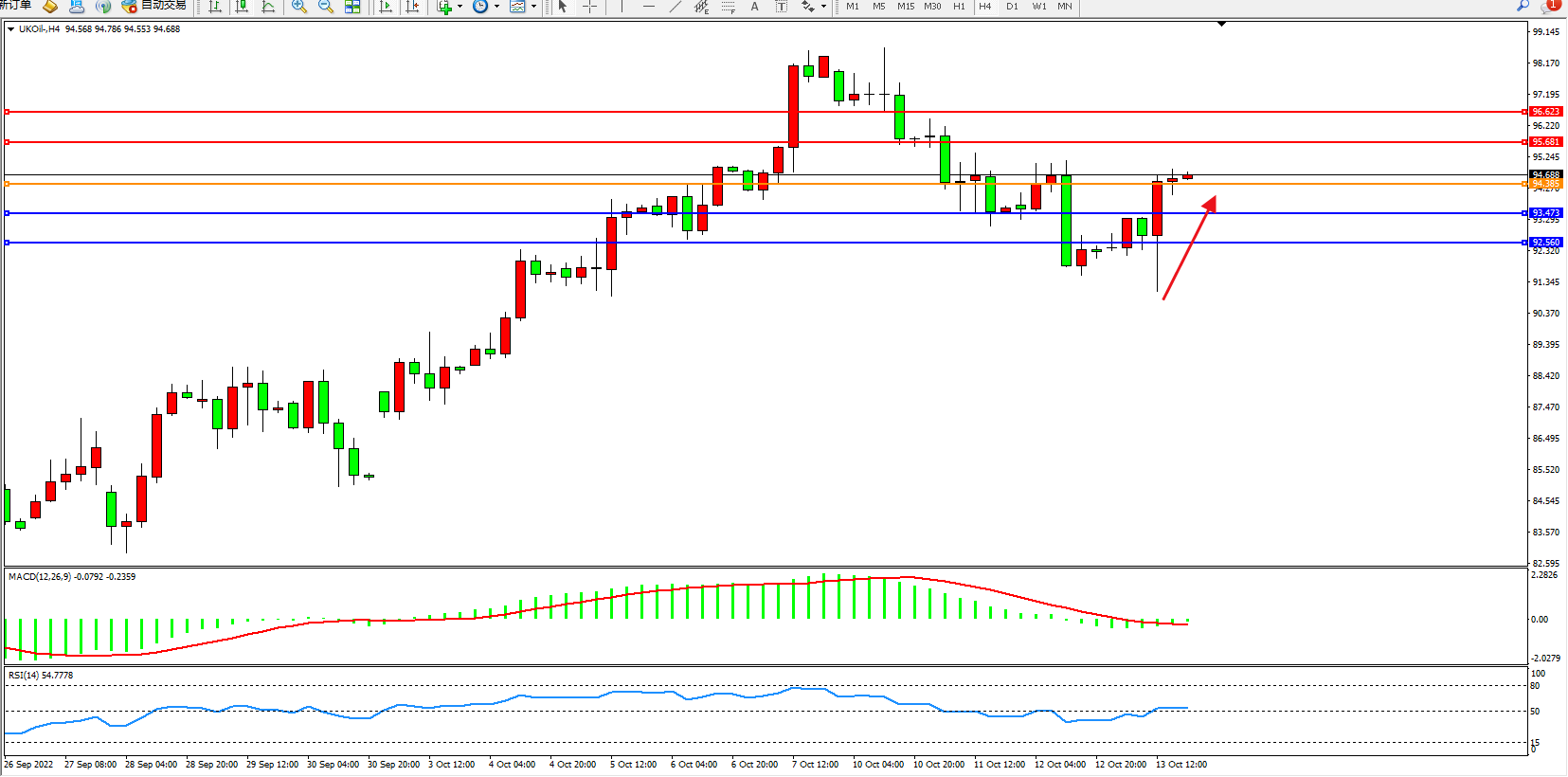布油UKOil——4小时K线图显示: