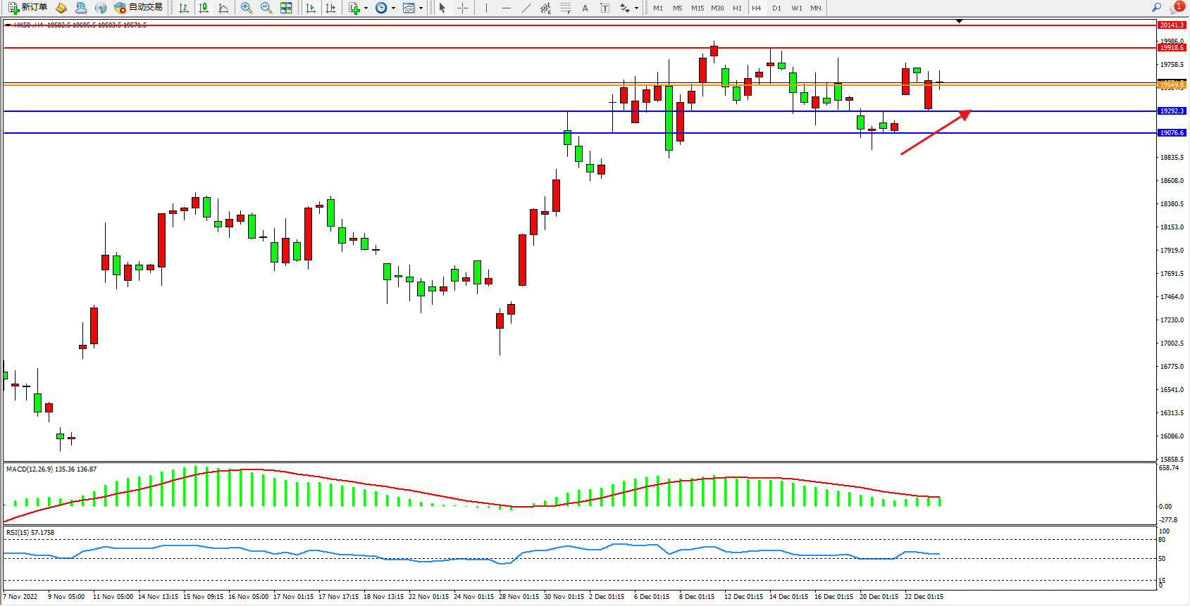恒指HK50 4小时图