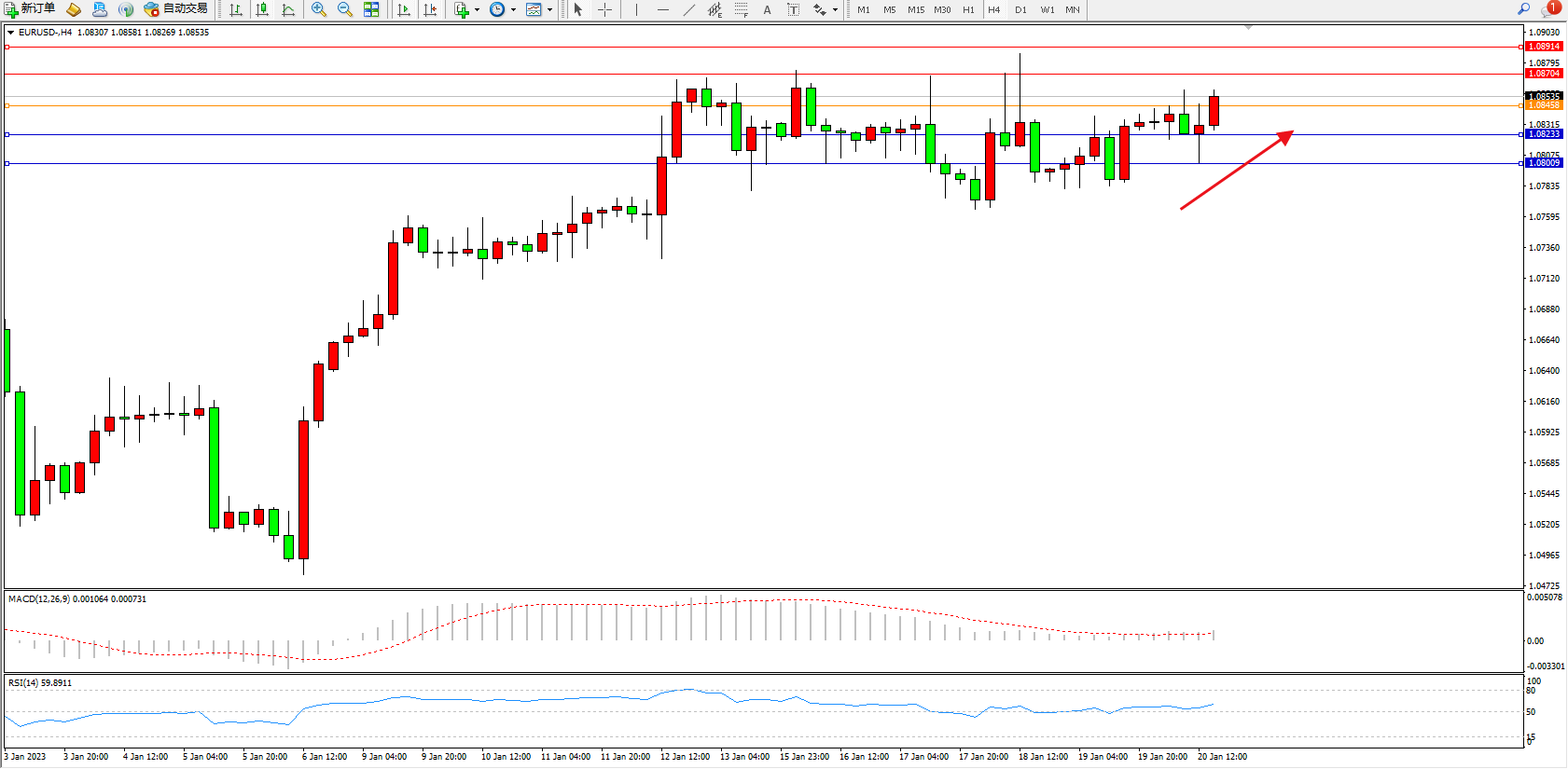 欧元兑美元维持1.08535附近震荡,上调对欧元区今年GDP增长的预期,预计2023年GDP将增长0.2%,而此前的预测是将收缩0.5%。今年年初悲观情绪有所减弱。对欧元区经济前景的信心在2023年初有所改善,特别是与2022年中后期的部分时期相比,当时与能源相关的经济活动进入深度和长期低迷的风险似乎很高。不过,该机构警告人们不要对经济增长持过于乐观的看法。