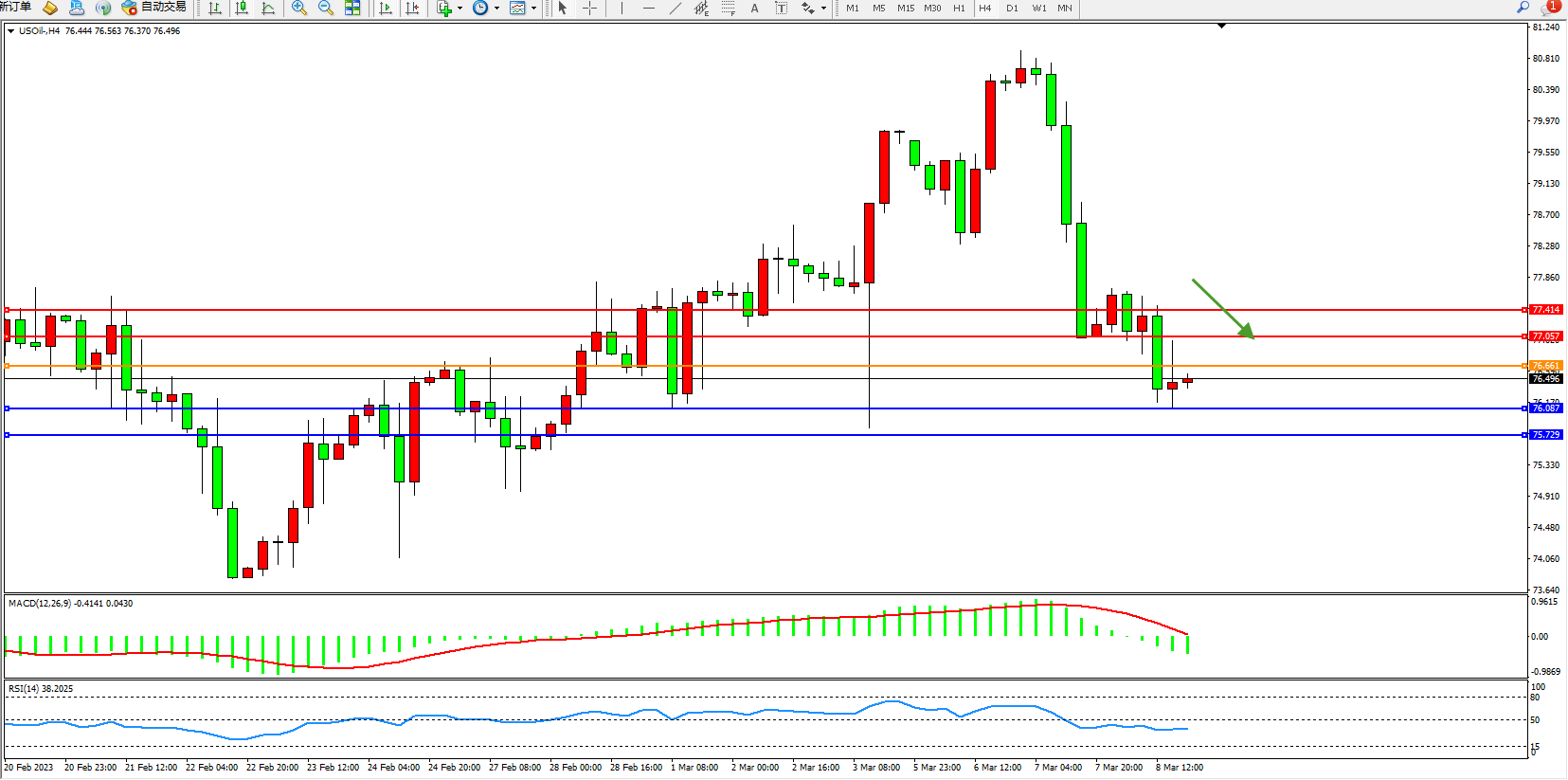 阻力位:77.057  77.414