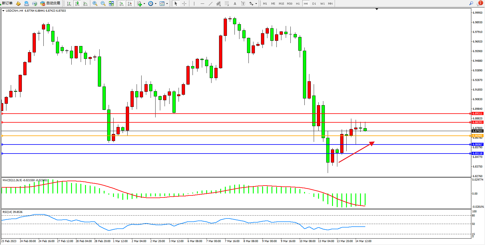 交易策略:6.86985下方看跌,目标6.86067 6.85118