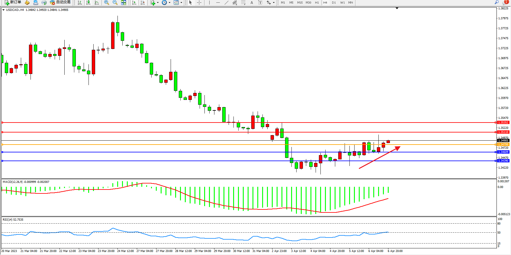美元加元USDCAD——4小时K线图显示: