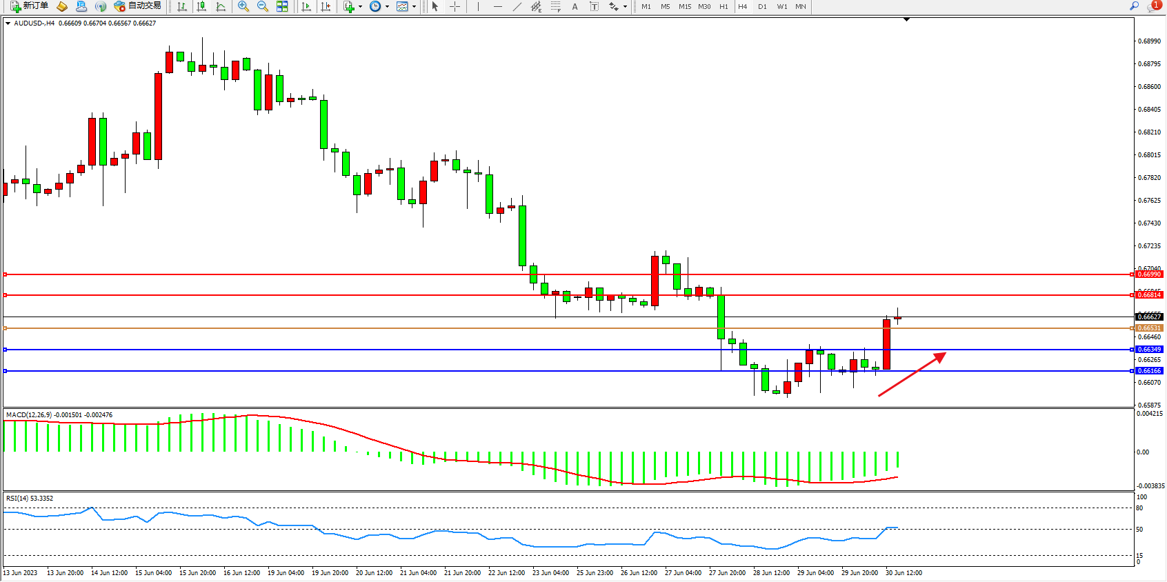 交易策略:0.66531上方看涨,目标0.66814  0.66990