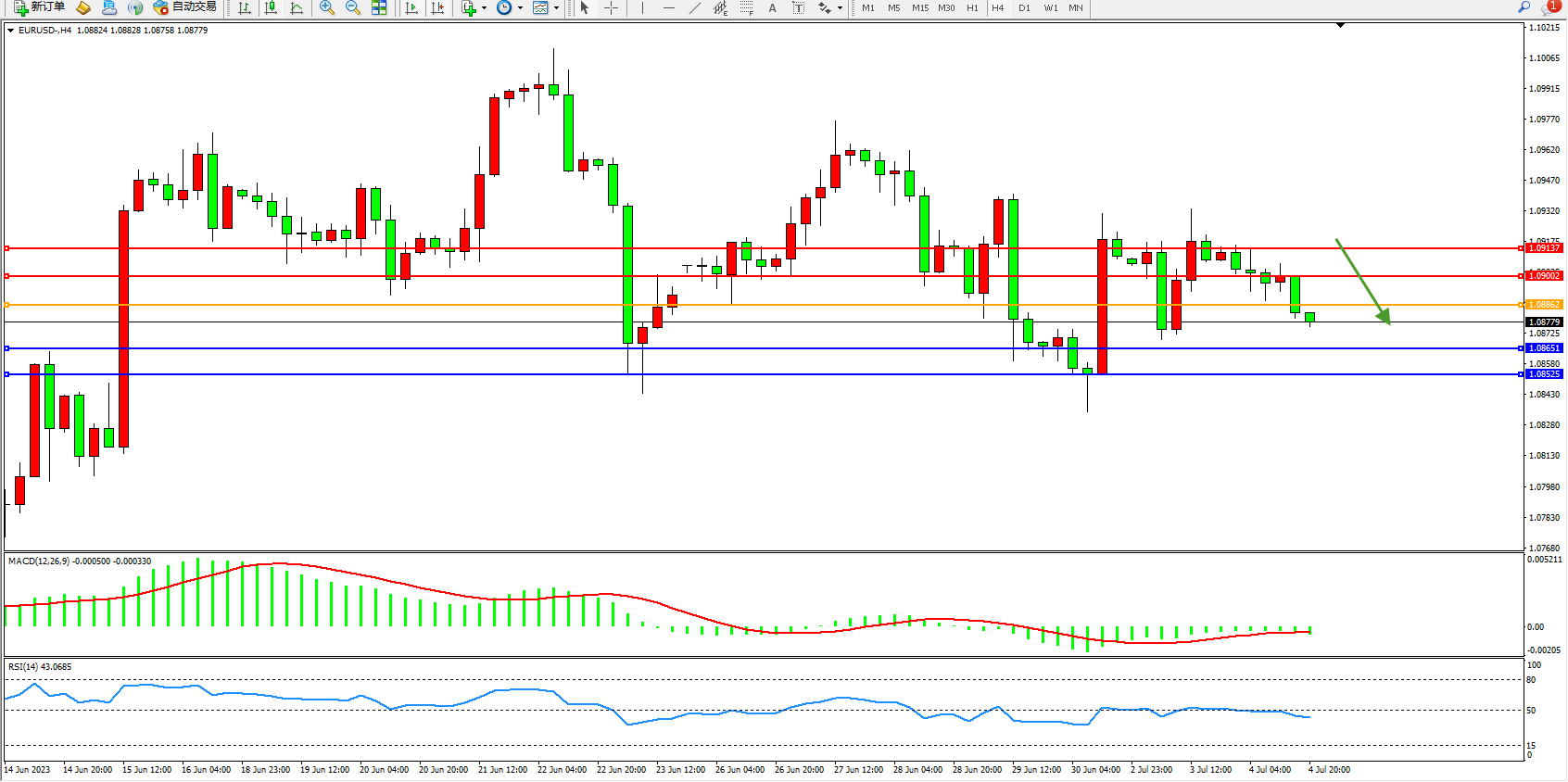 交易策略:1.08862下方看跌,目标1.08651  1.08525