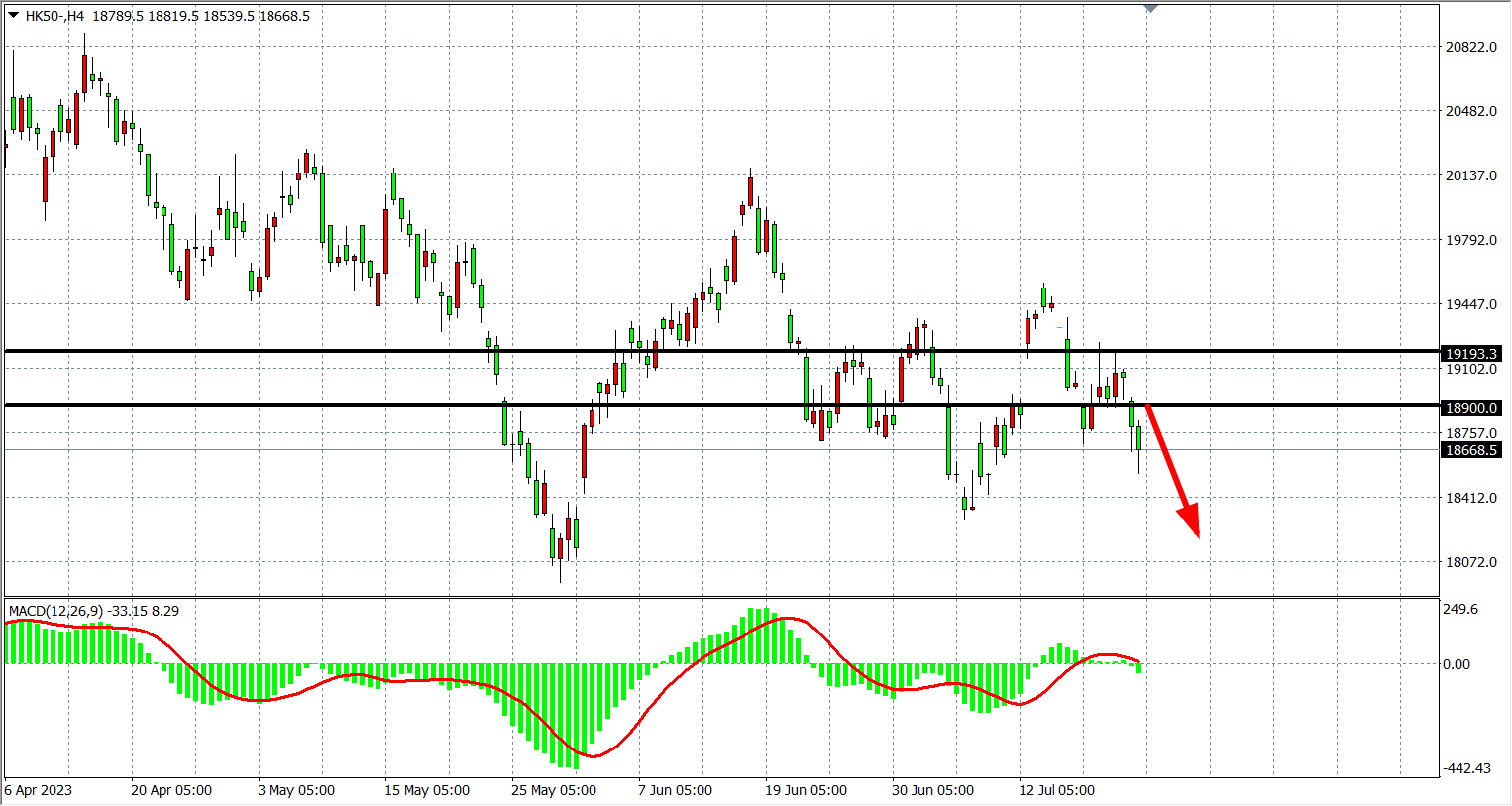 交易策略:18900    下方看跌,目标 18300  18000