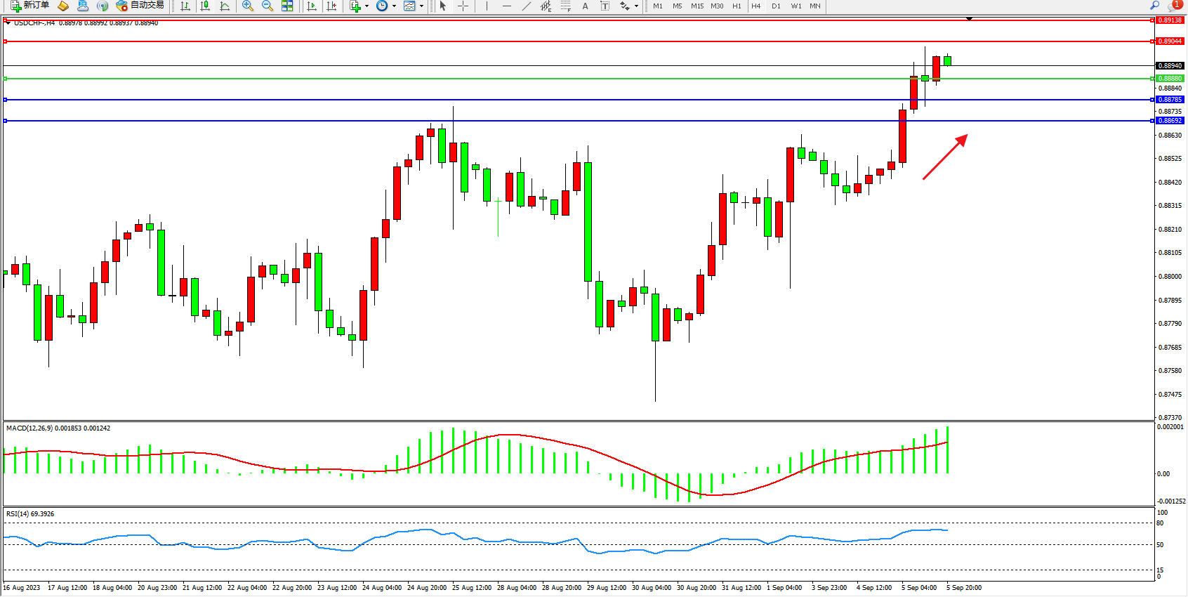 USDCHF:高位上扬