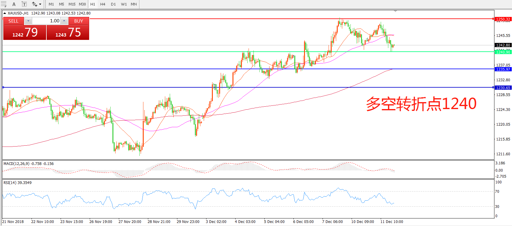多空转折点:1240.00