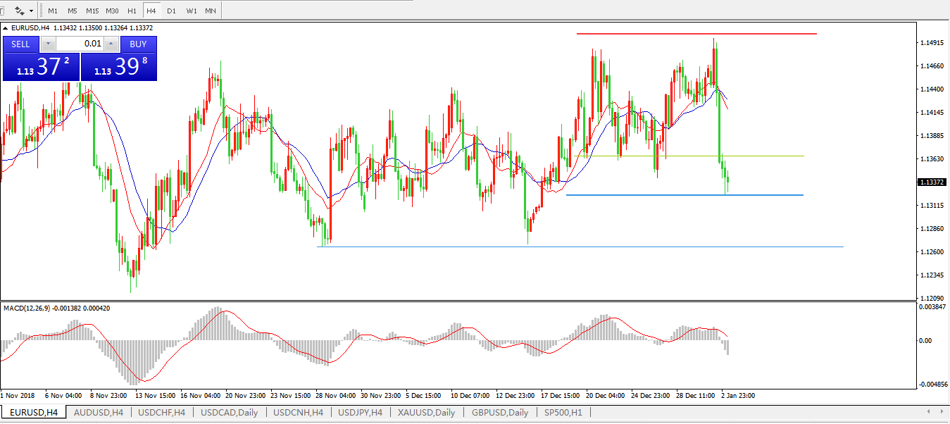交易策略:在1.1365之下,看跌,目标价位为 1.1320 ,然后为1 .1270