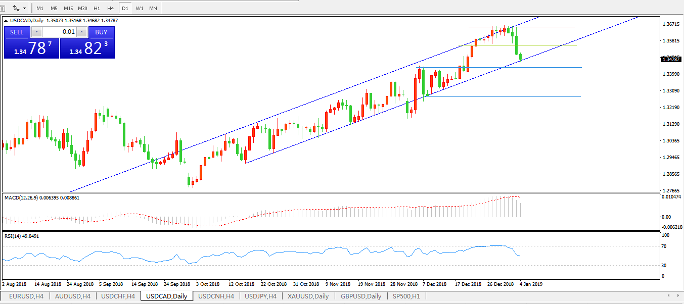 技术面简析:MACD延续0轴上方运行但动能柱开始缩量,RSI超卖背离后快速下行,汇价打破多空分界下行,预计将进一步下行,下坡通道下轨的概率很大。