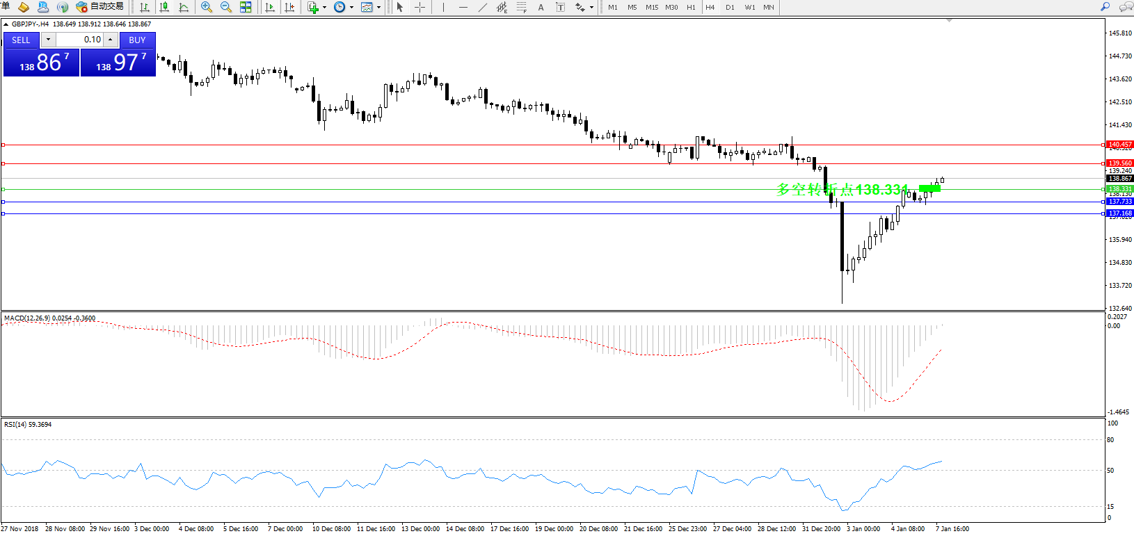 交易策略:138.331上方看涨,目标139.560140.457