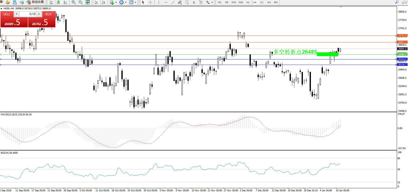 恒指HK50 ——4小时K线图显示: