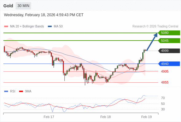 在 4940 之上,看涨,目标价位为 5045 ,然后为 5080 。