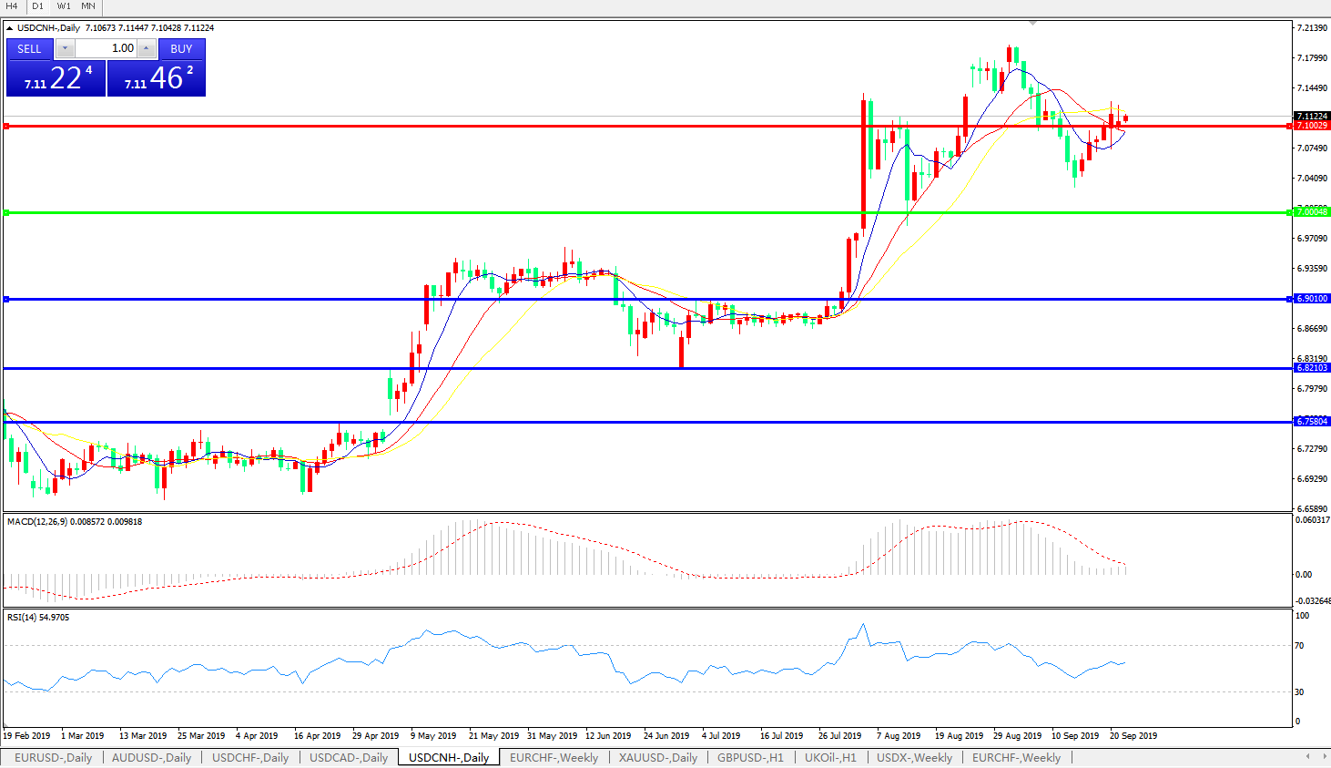 交易策略: 在7.0000之上,看涨,目标价位为7.1000,然后为7.2000。