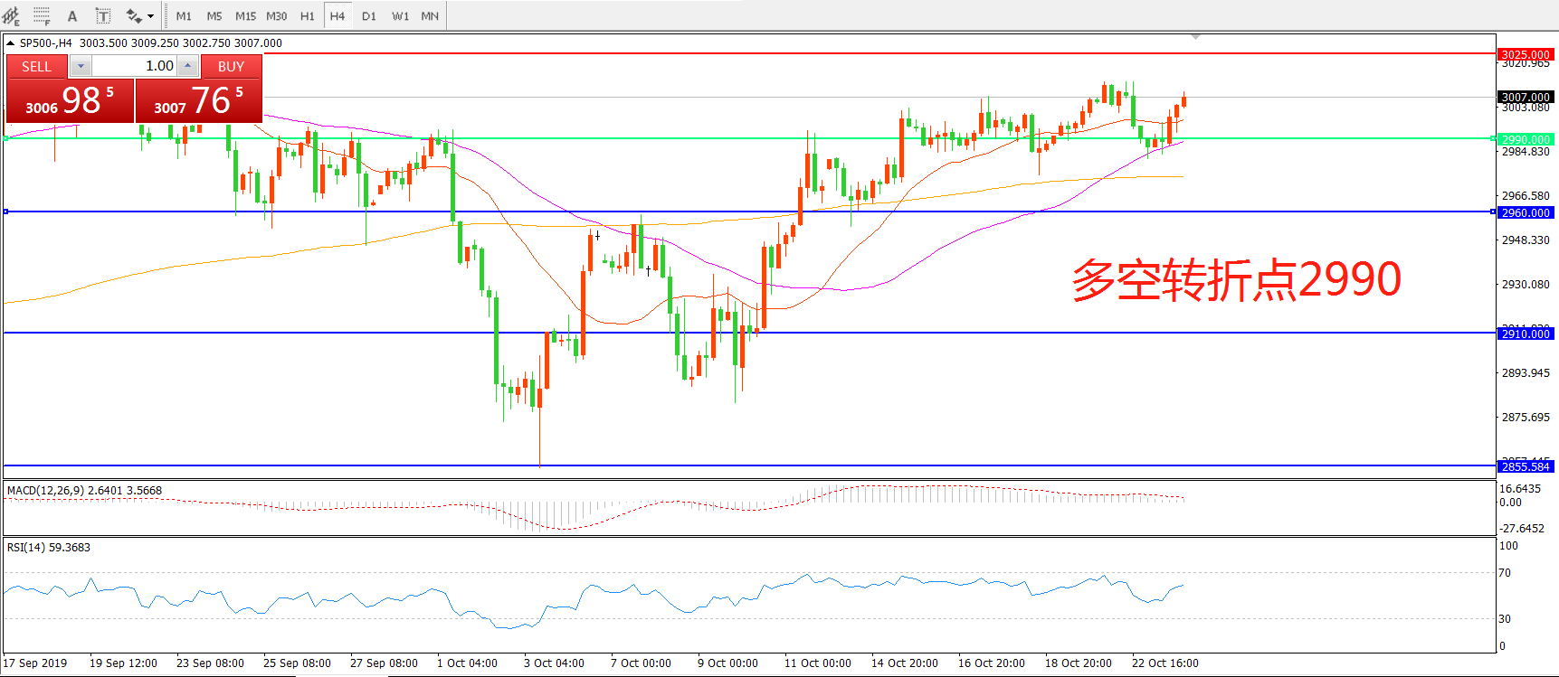 多空转折点:2990.00