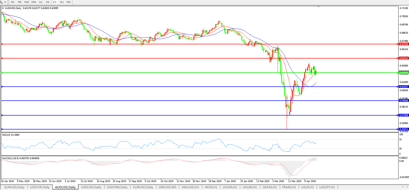 澳元兑美元AUDUSD 日线图: