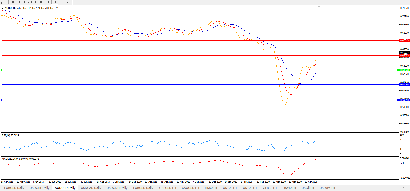 澳元兑美元AUDUSD 日线图: