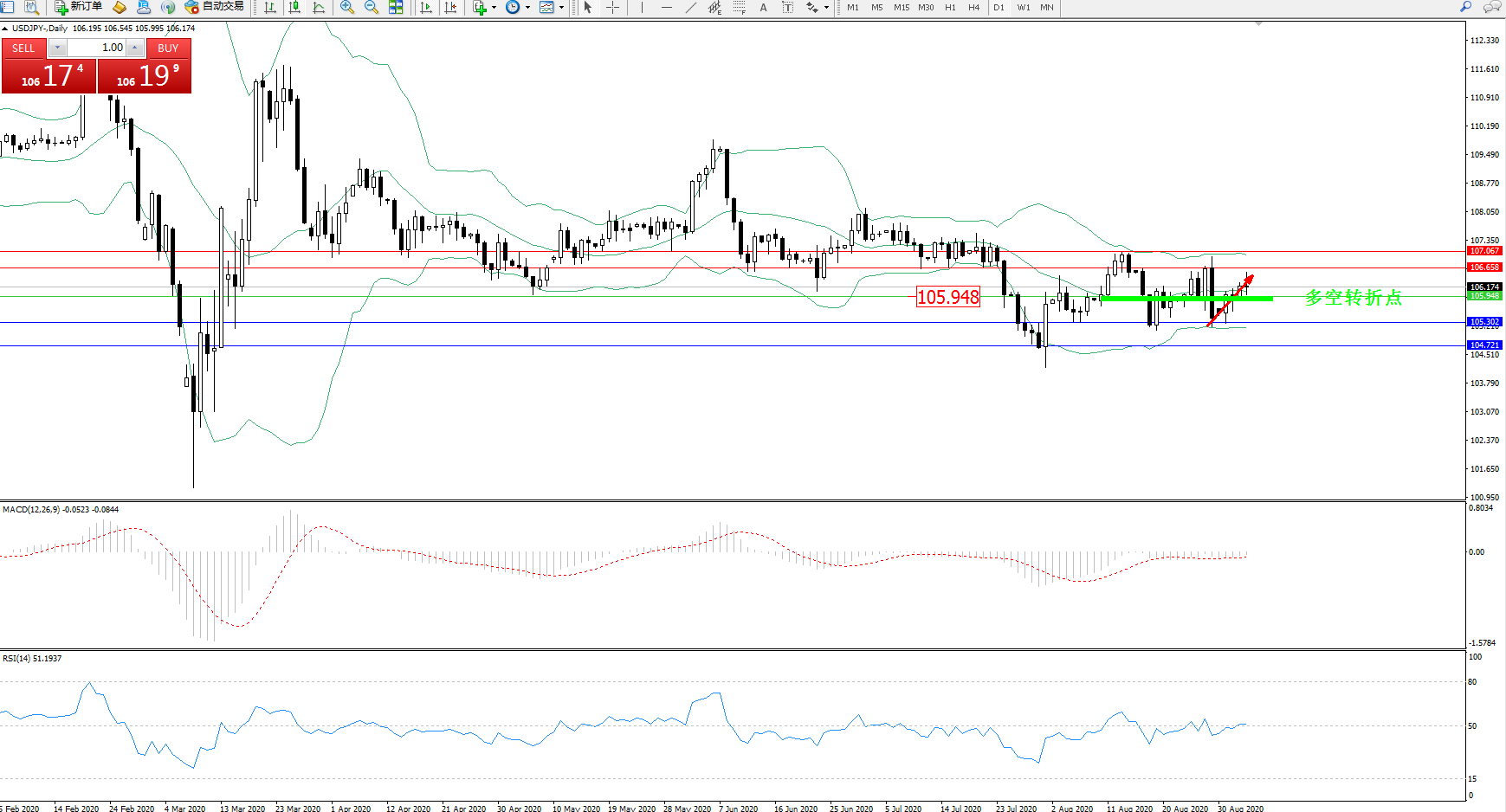 美元兑日元四连阳小幅上移至106.161附近整理,美元近期走高,而市场风险偏好情绪整体乐观,也不利于日元表现,日本首相安倍晋三上周宣布辞职,理由是身体状况不佳,但他的主要经济战略(一系列被称为安倍经济学的刺激政策)可能会幸免;他可能的继任者,日本内阁官房长官菅义伟,他将“维持并推进”涉及大规模货币政策放松,财政支出和结构改革的战略;安倍将留下的未完成业务包括降低日本的公共债务和解决长期的结构性问题,例如官僚主义严重。日本央行承诺进一步放宽政策,使其政策利率决定更具体地与价格目标挂钩,日本央行必须承诺在特定情况下采取行动。