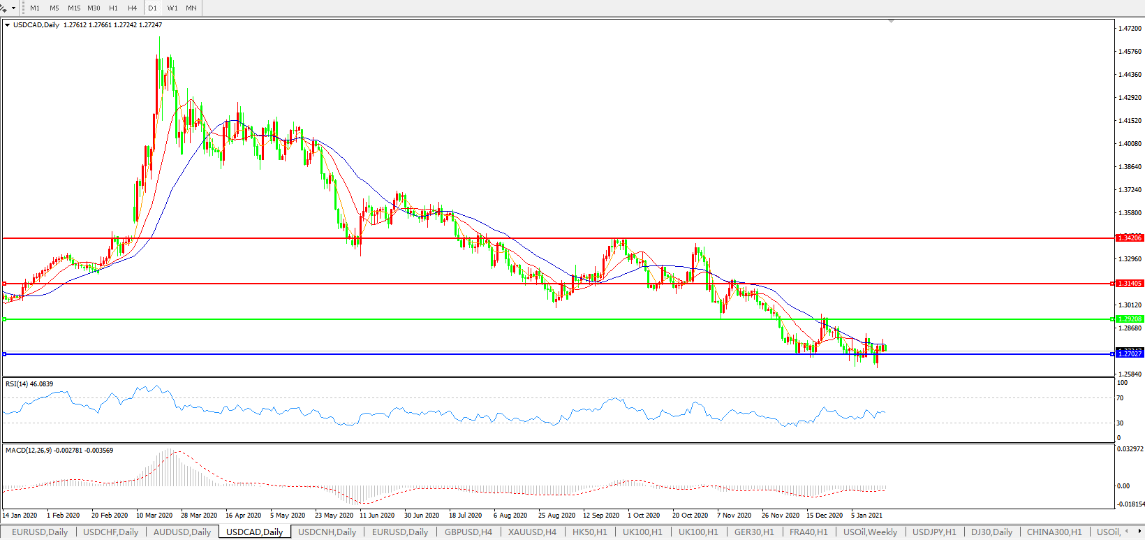 美元兑加元USDCAD    日线图: