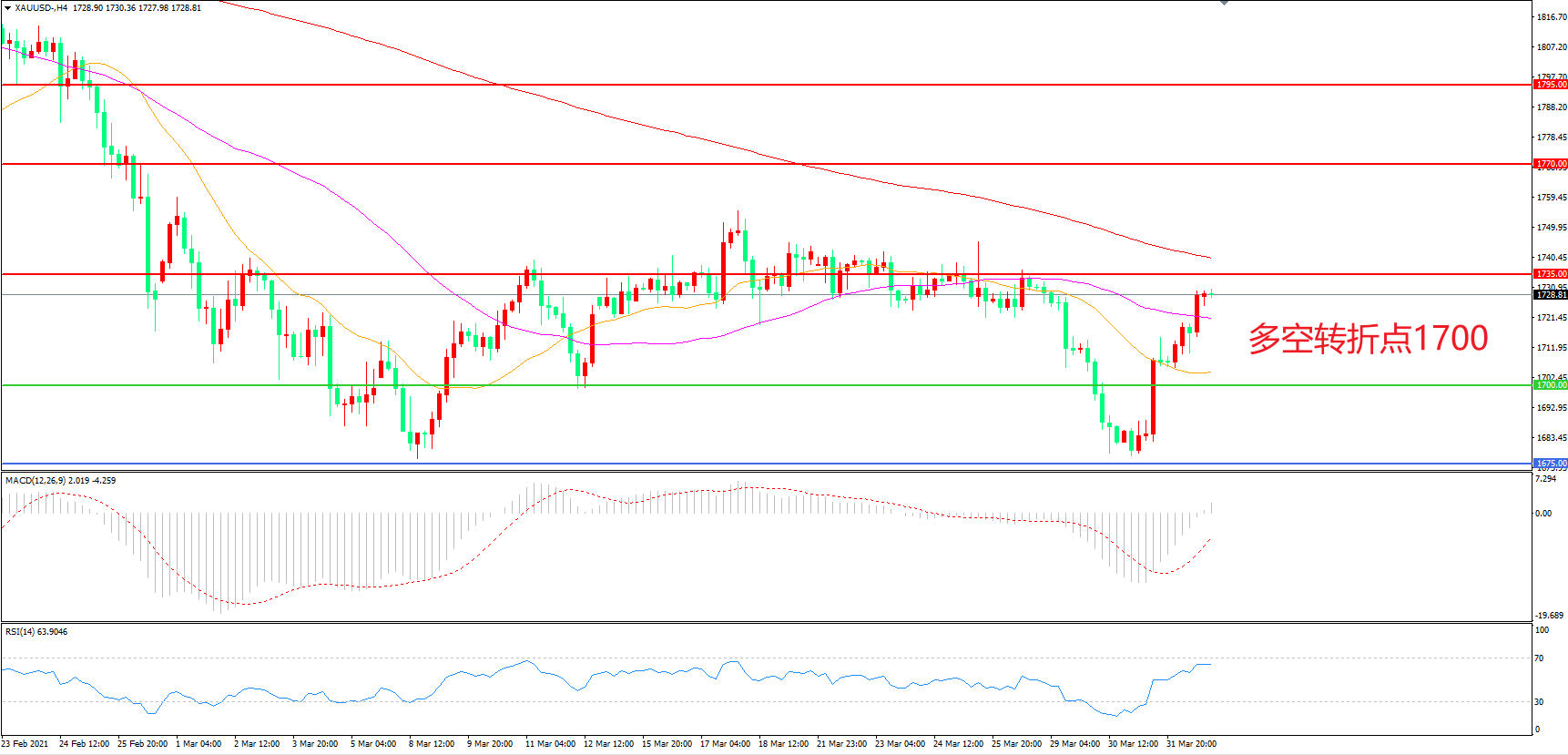 交易策略:在1700.00之上看涨,目标1735.00 1770.00