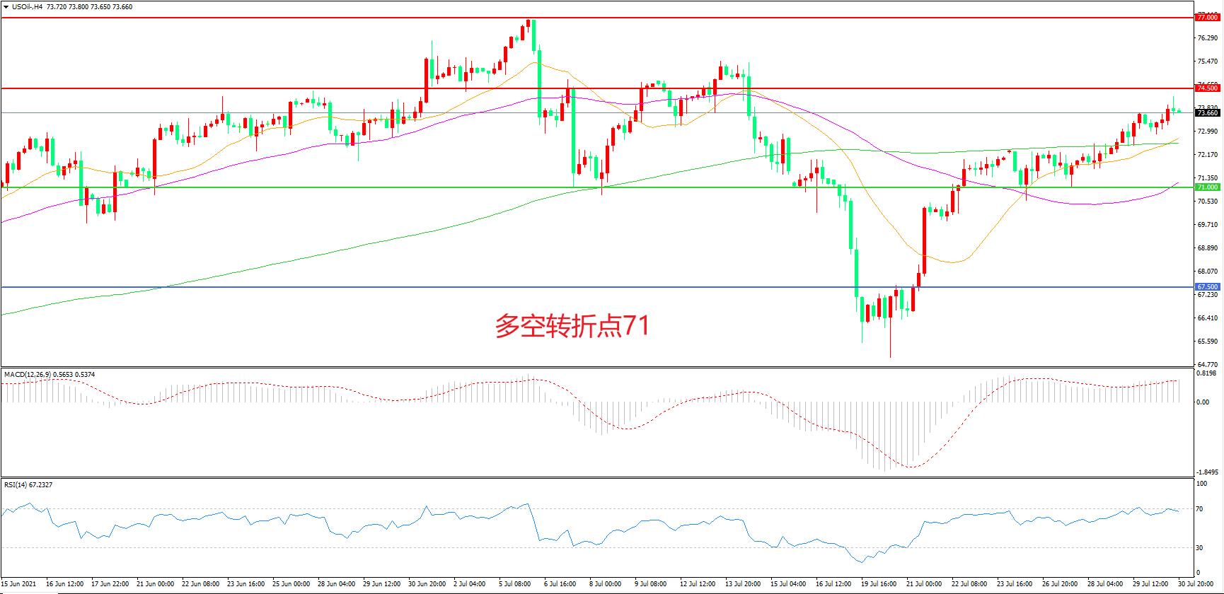 多空转折点:71.00