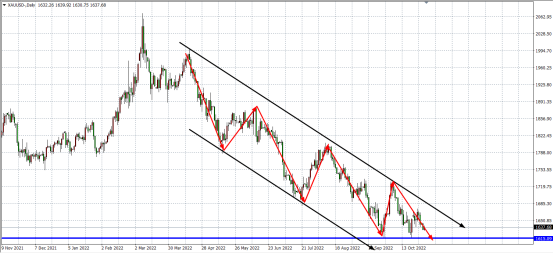 目前市场已充分消化了美联储11月加息75基点的预期,也就是说,若该行如预期般加息75基点,黄金不太可能因此承压。另外,美联储或在政策声明中暗示今年12月或明年年初放缓加息步伐,这也在投资者的意料之中。美元也扩大了9月底以来的回撤幅度,但黄金并没有借机大幅反弹,反弹始终受制于1680美元一线。