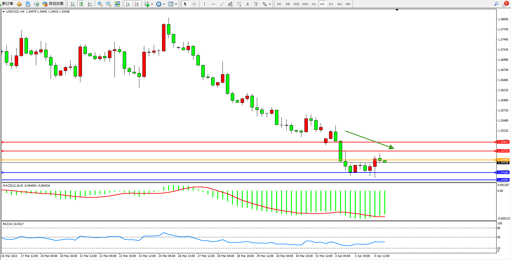 交易策略:1.34499下方看跌,目标1.34186  1.34000
