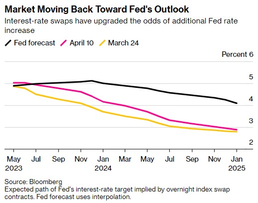 由于上周五美国在假期缩短的交易时段公布了强劲的就业数据,交易员提高了美联储5月份再次加息25个基点的可能性。
