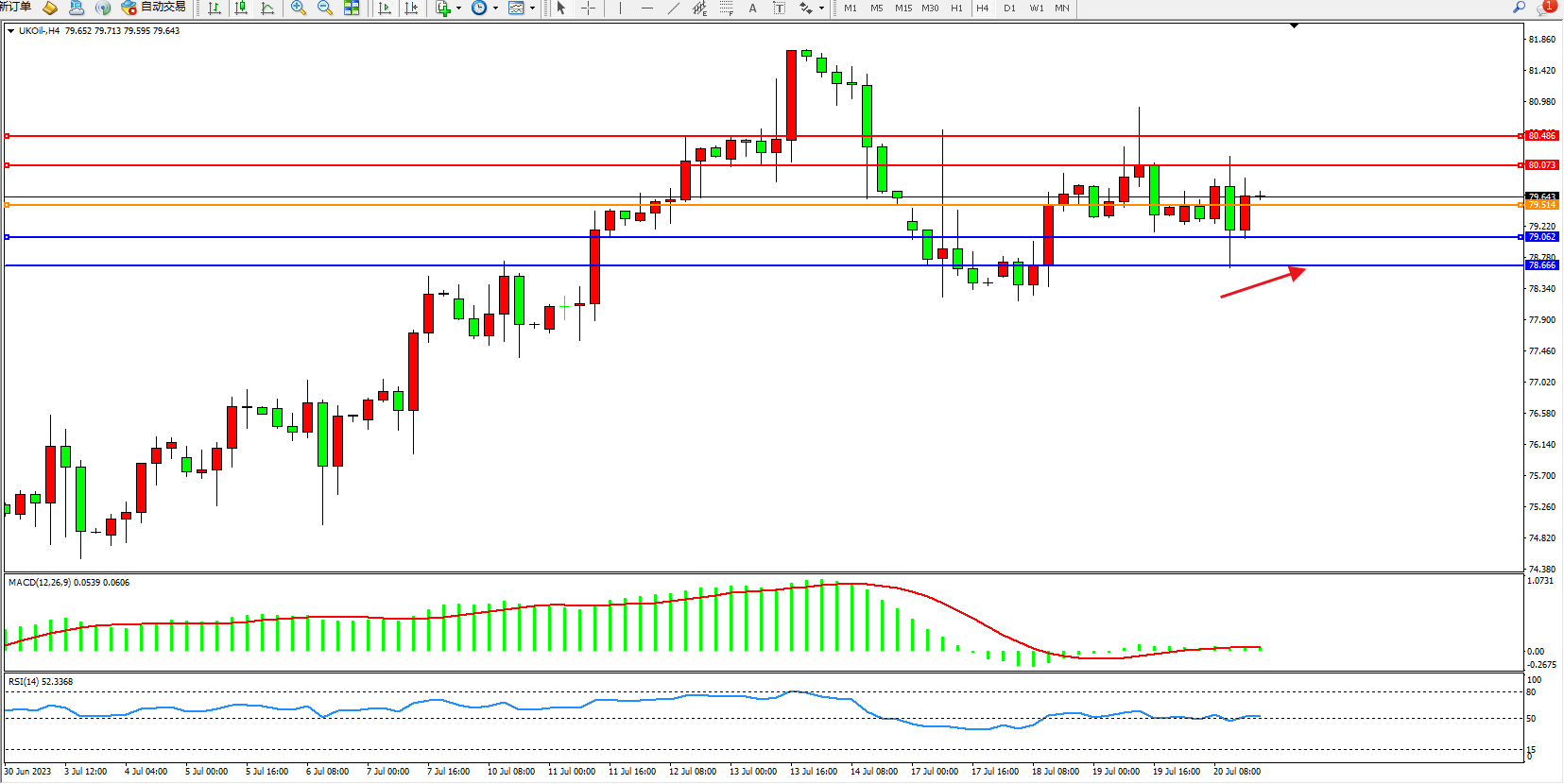 交易策略:79.514上方看涨,目标80.073 80.486