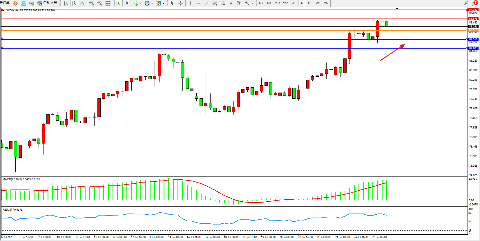 布油UKOil——4小时K线图显示: